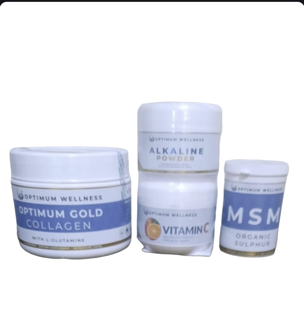 It consist of Optimum Gold Collagen, Alkaline Powder, Vitamin C, MSM Capsules. Can be taken for bone strength, bone and joint pain, anti aging and longevity. Buy Combo for R895 and get Ancient Mineral Clay Mask value of R295