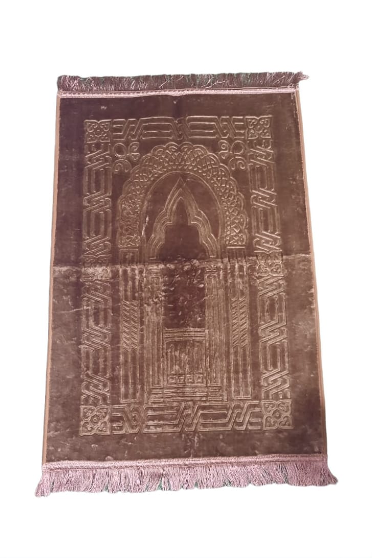 Plain Velvet Non slip musallah Available in brown.